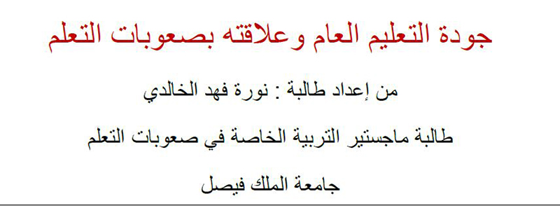 جودة التعليمٌ العام وعلاقته بصعوبات التعلم نورة فهد الخالدي