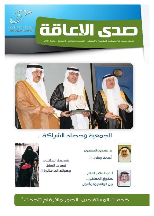 مجلة صدى الإعاقة - جمعية المعاقين بالأحساء – العدد السادس والسابع - يونيو 2011